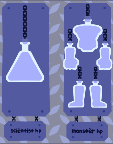 I built the body of the Monster out of a collage of photos to achieve a true Frankenstein's Monster look- he is made of nothing but borrowed parts. Progression through the game's levels will reveal new enemies, beginning with an angry mob of men, and ending with mobs of robots, demons, and angels added to the mix. As the enemies get weirder, so does the Monster, because the Scientist can pick up the parts of slain monsters and attach them to her creation as a power-up.